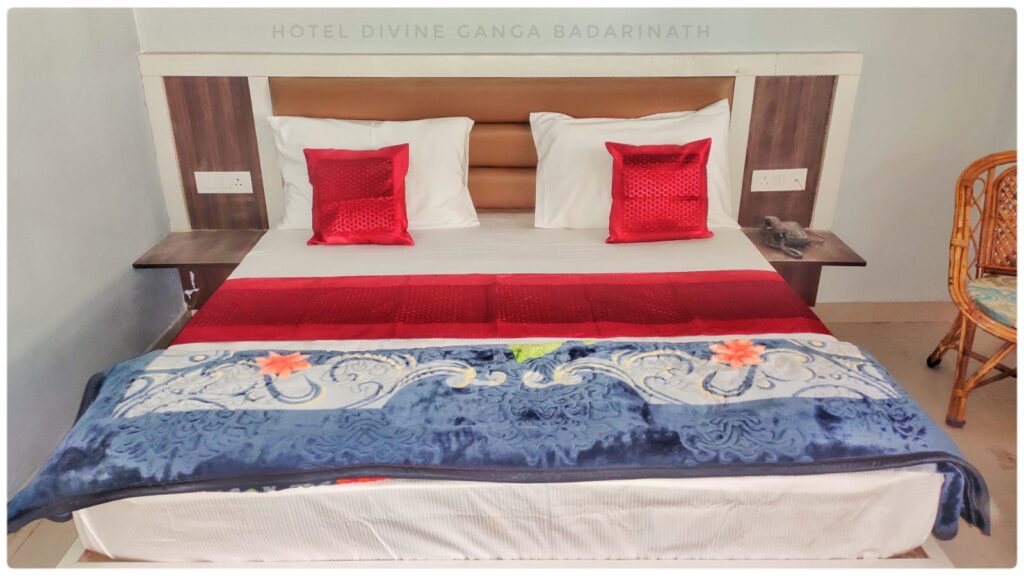 Hotel Divine Ganga Marketed By Celebrate Vacation is 3 star luxury hotel & 800-900 meters away from Shri Badrinath Ji Temple. Our rooms are fitted with attached bathroom, Hot running water, LED TV with comfy bed. Our hotel have car parking facility too. This makes our hotel ideal for families and small groups. We are one of the best hotel to stay at Shri Badrinath Ji Dham.